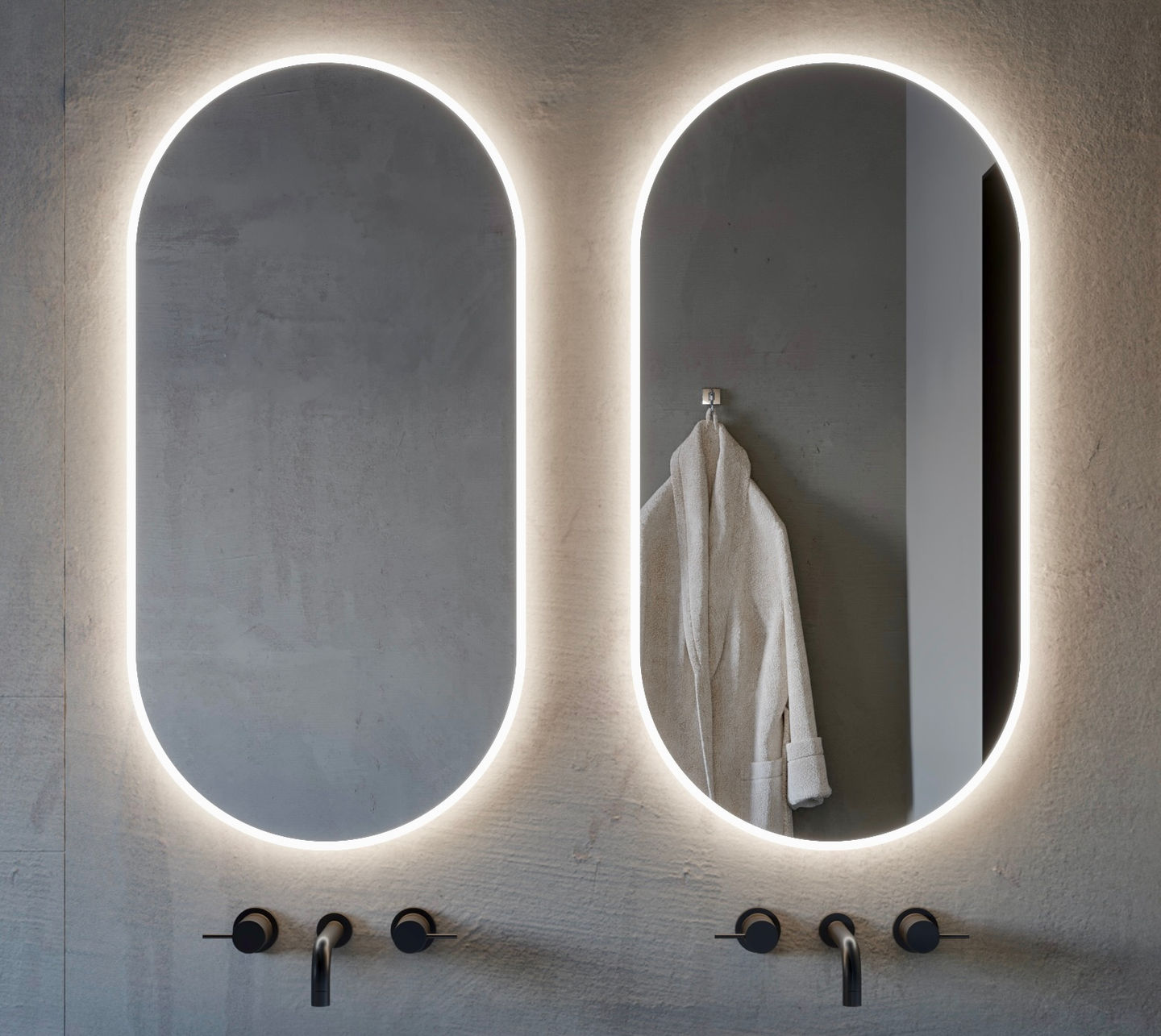 Mirror with 10mm perimeter etched defused frontal and back-lit illumination.